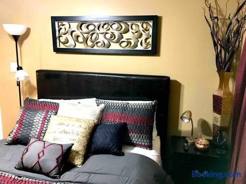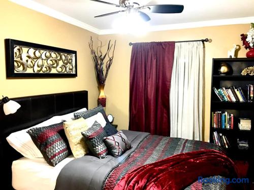 This lovely home is located in the quiet and quaint Carrington neighborhood. Built in the 1980s, this cozy home has charming decor that creates a warm guest space. The room is quite cozy! The interior design has character. It is suitable for longer stays.
