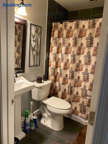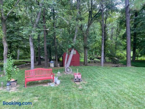 Relax and unwind with natural rustic beauty with a stream at this peaceful and centrally-located place.